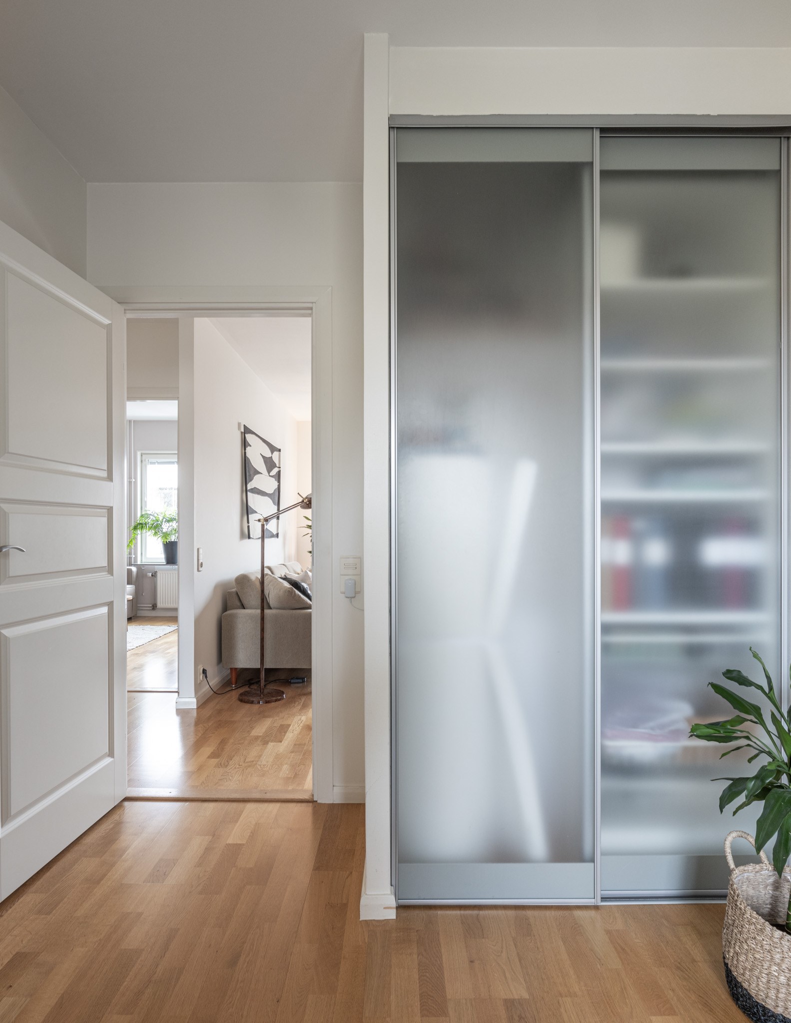 Lägenheter med tre bra sovrum är inte lätt att hitta. Detta hus är dessutom både ett landmärke och en kvalitetsmarkör på Liljeholmen. Ljust sett både till exteriör och interiör. Apropå Kilallén utanför så är det ett tema som går igen i lägenhetens kilform när du kommer in i hallen. En vinkling som gör att hallen suger in dig, bort mot vardagsrummet, och att kök och badrum känns allt annat än förväntat fyrkantiga. Med stort badrum och separat tvättstuga kan familjeplaneringen börja.