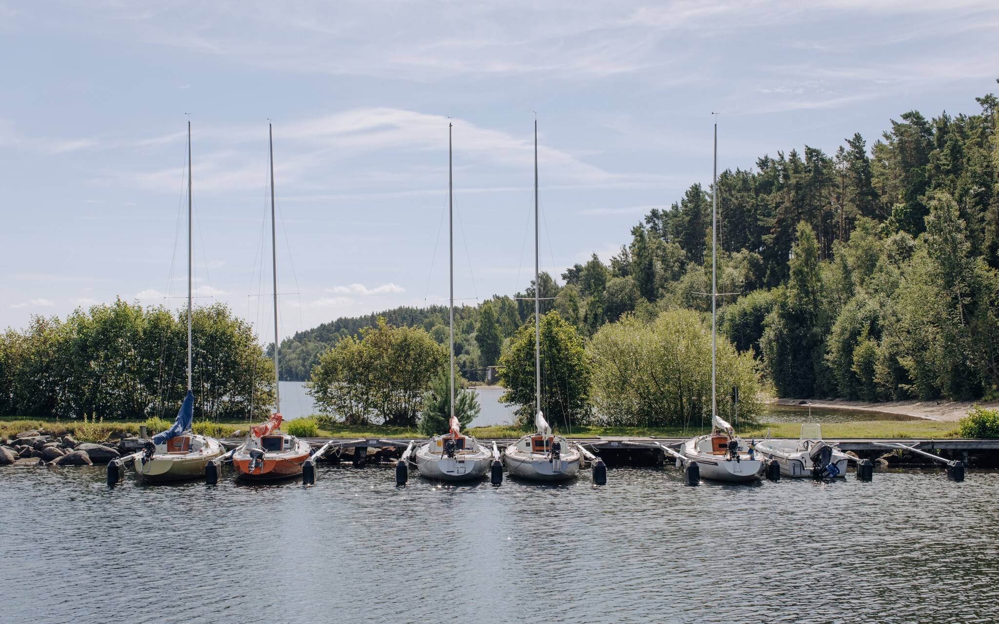 I ene hörnet av övervåningen ligger tre rofyllda rum med karaktär från husets tidiga 1900-tal: vinklar, snedtak och ljus som vandrar över dagen. Två av rummen rymmer dubbelsäng utan problem och det tredje gör sig fint som barn eller tonårsrum. Förvaring finns i garderober och smarta hyllor, och de varma trägolven ger samma mjuka känsla i alla tre rum. Lätt att anpassa efter familj och fas i livet.